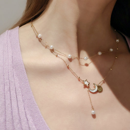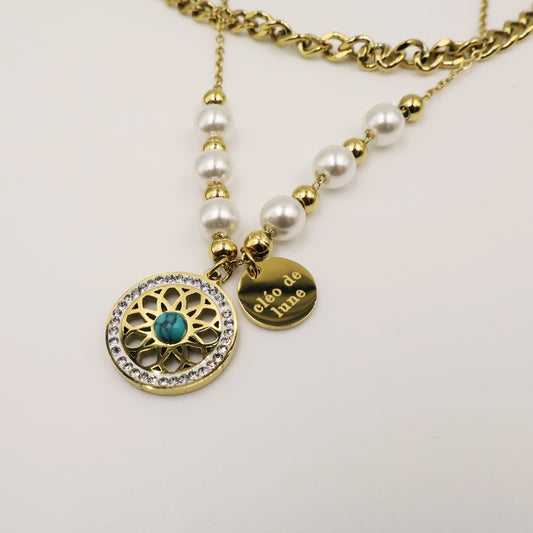 Turquoise Mandala Chain Necklace with Pearls in Gold
